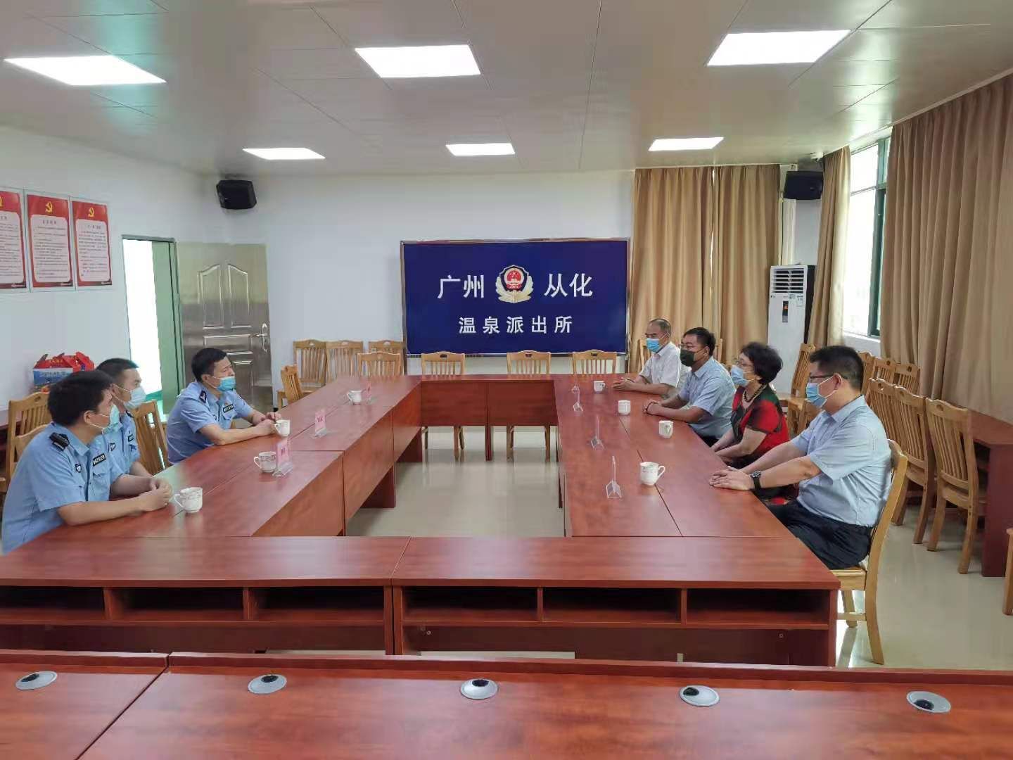 唐燕常务副校长表示,民警同志舍小家顾大家,夜以继日坚守在工作岗位,维护辖区社会稳定,特别是新冠肺炎疫情防控工作开展以来,大力支持学校的安全稳定工作,尤其是6月5日晚通宵执勤为学校开展全员核酸检测做好安全保障工作,她代表全校师生对这种“为人民服务”的奉献精神表示衷心感谢。代燕飞校长助理也对温泉派出所长期以来支持学校平安校园建设,指导警务室、保卫部工作表示诚挚谢意,并就进一步开展防范电信诈骗、校园安全综合治理等工作进行了交流。