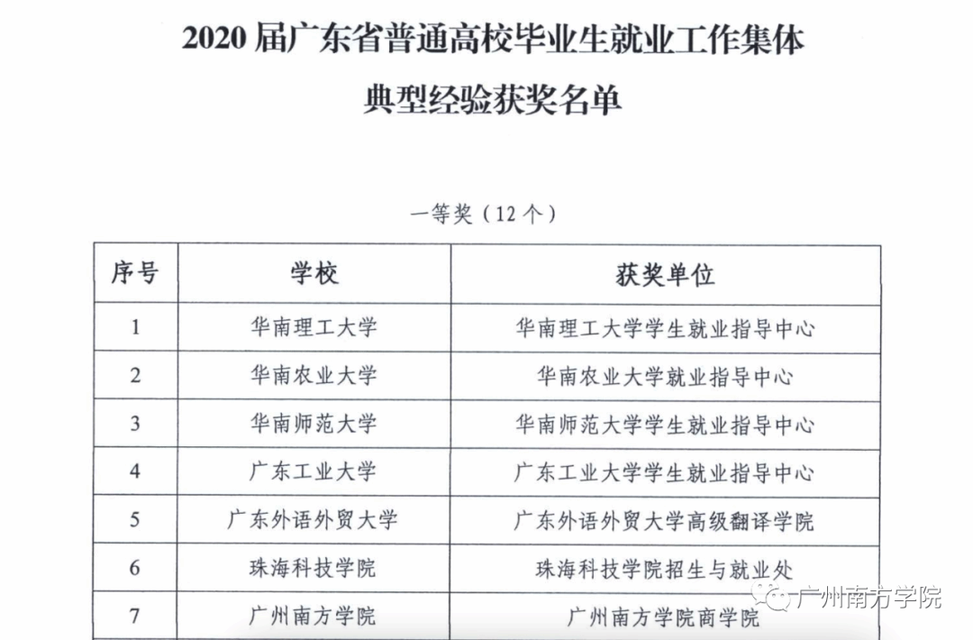 据广东省教育厅通知,本次评选共收到123所高校552份申报材料。经过专家组的严格评审与公示,最终全部奖项评出,包括就业集体一等奖12个、创业集体一等奖12个。