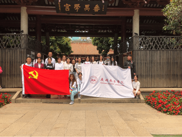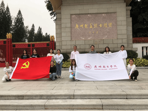 2021年清明小长假期间,“红色实训营”举行了开年首次游学实践活动。游学期间,实训营小伙伴们在综合素养学部张书理、杨乐老师带领下,先后参观了中山纪念堂、毛泽东同志主办广州农民运动讲习所旧址、广州起义纪念馆、广州起义烈士陵园。游学活动中,小伙伴们除以深深的敬意对革命先驱表达深切缅怀之外,还通过素材搜集、视频拍摄、现场解说等形式开展党史学习、宣讲等实践活动,以期让红色画面、红色声音、红色故事感染更多国人。有感于南方学院以研学促实践、以实践扬红魂的思政教育理念,广东省政策研究会的张轩老师和广州市委宣传部基层百姓宣讲团宣讲员陈丽萍老师也主动加入williamhill中国官网游学队伍,共同开展了铭党恩、讲党史的实践调研。