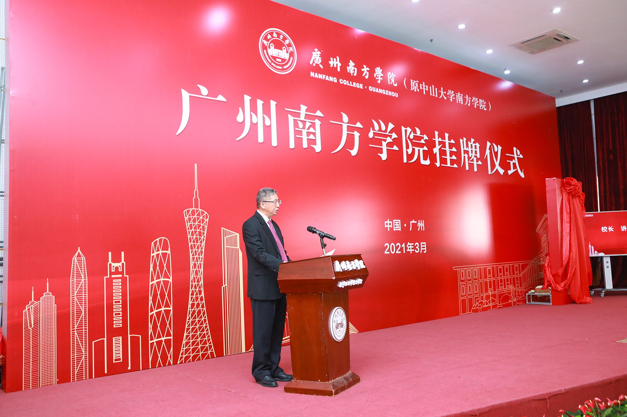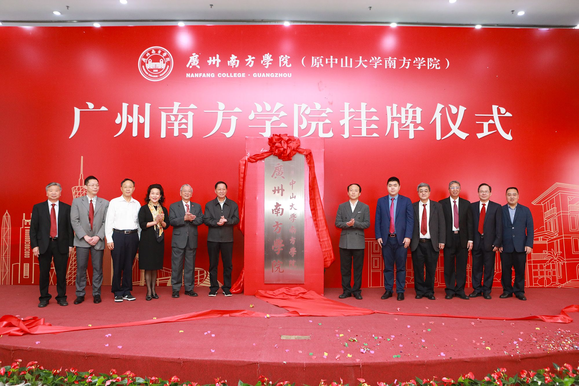 广东省教育厅、从化区、中山大学、广东珠江投资股份有限公司、新闻媒体、学校领导、各二级单位负责人、教师及学生代表出席挂牌仪式。 仪式由学校党委书记李建超主持。
