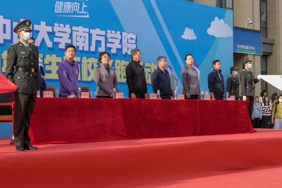 12月23日下午,中山大学南方学院2020年师生环校长跑活动在学校综合楼广场鸣笛起跑。校长喻世友,党委书记李建超,常务副校长、副书记唐燕,副校长龚鸣,财务总监刘振宏等校领导和各院系、部门工会近900名师生16支队伍参加此次长跑活动。起跑及颁奖仪式由体育教学中心主任何江海教授主持。