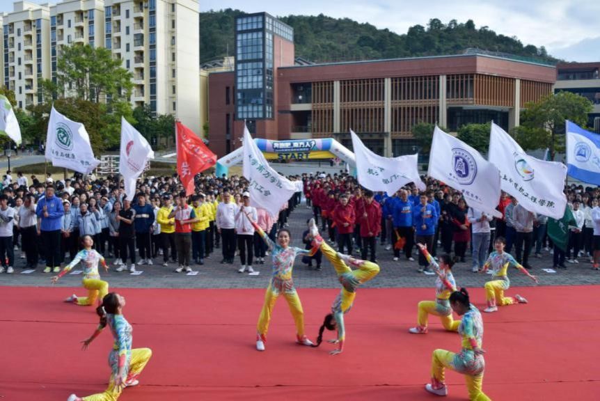 随后,体育教学中心史悦红老师带领校领导和师生们跳健身操热身,随着喻世友校长鸣笛,学校领导一同出发,带领广大师生开启环校长跑。各院系、部门工会队伍以整齐有序的步伐、士气高昂地行进在校道上,不时传来铿锵有力的口号声,响彻校园,展现了师生员工的飒爽英姿,彰显了南方人活力向前、砥砺奋进的精神风貌。校团委在沿途组织啦啦操等快闪活动,为长跑的师生员工加油助威。