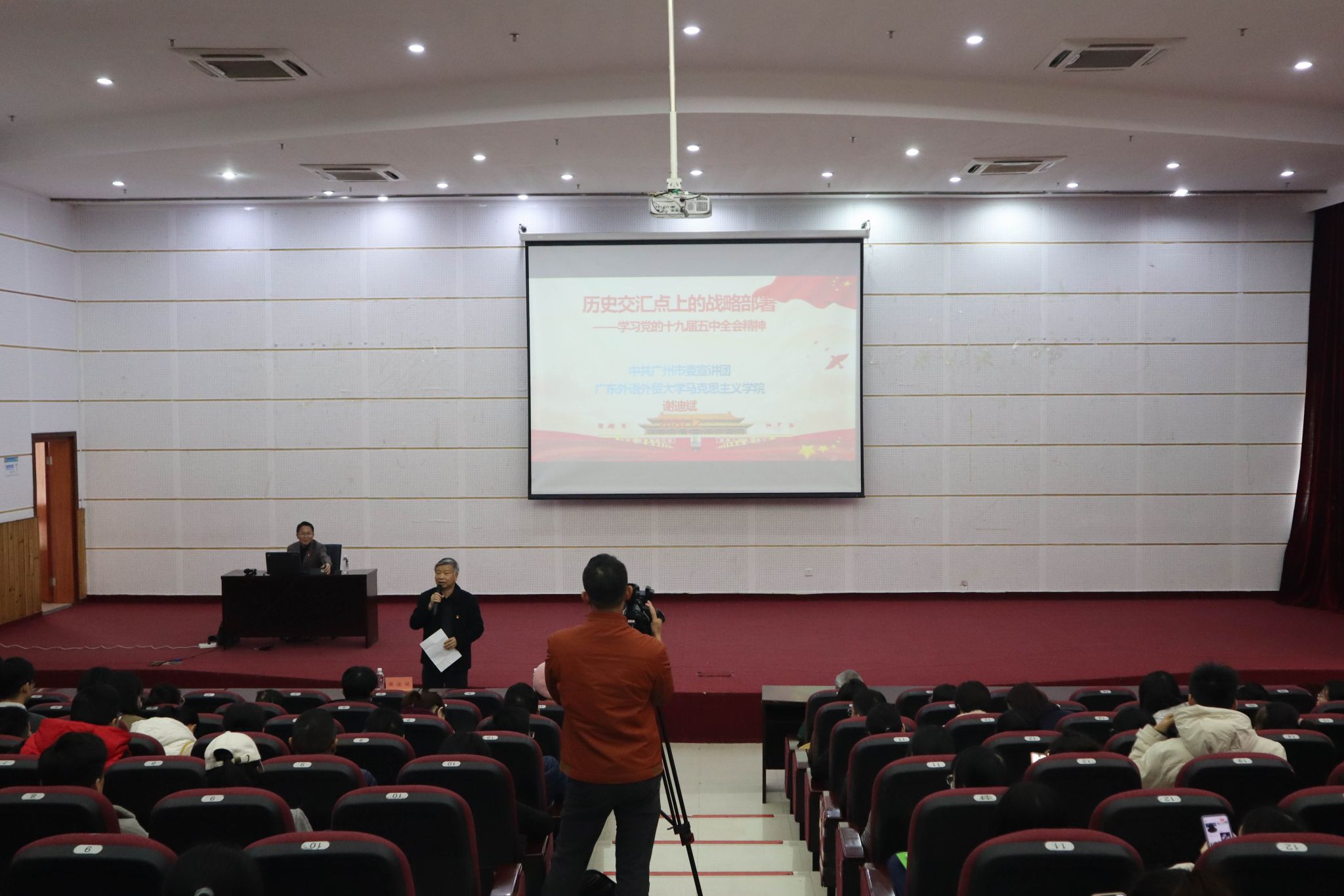 讲座由学校党委书记李建超主持,学校200余名教职员与学生代表参加。