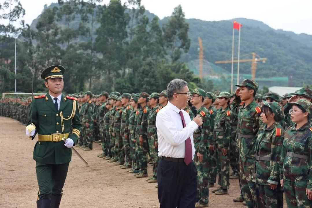 9月29日下午,中山大学南方学院2020级新生军训阅兵式暨总结表彰大会在西区田径场隆重举行。学校领导班子,承训单位代表,各院系代表以及一年级学生工作部代表出席大会,大会由一年级学生工作部部长程爱民主持。