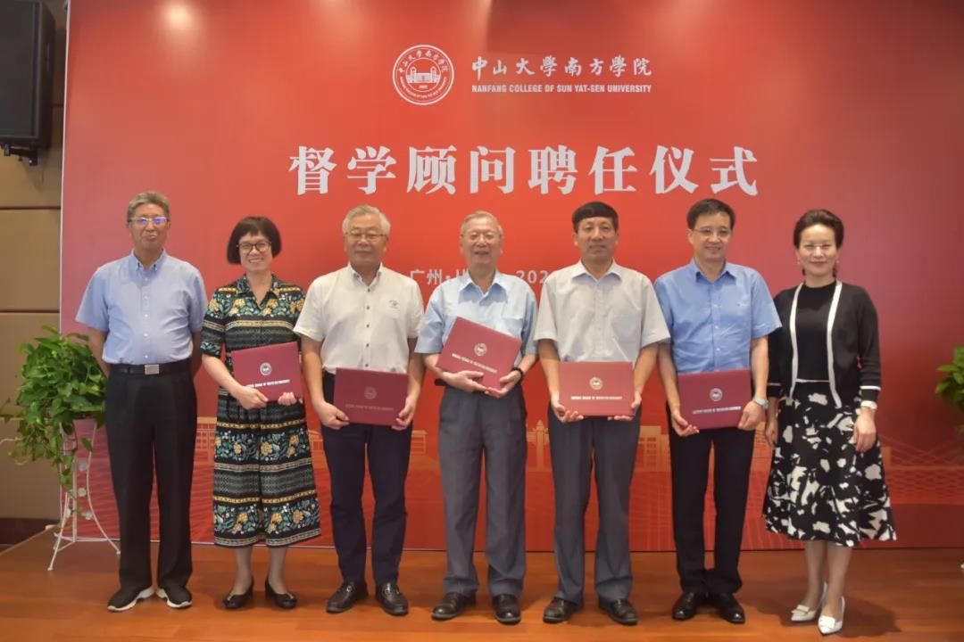 最后,举行中山大学南方学院督学顾问聘任仪式,续红女士、喻世友校长为到场的五位督学顾问颁发聘书并合影留念。