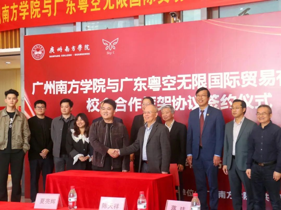 随后,夏亮辉副校长与张斌董事长作为双方代表在校企合作框架协议上签字。本次校企合作将由校友企业广东粤空无限国际贸易有限公司出资500万元人民币,用于学校数字化传播与运营产业学院建设,双方共同制定人才培养方案,推进人才培养、产学研一体化和企业社会服务等方面的发展,实现人才培养与产业发展的有效衔接。