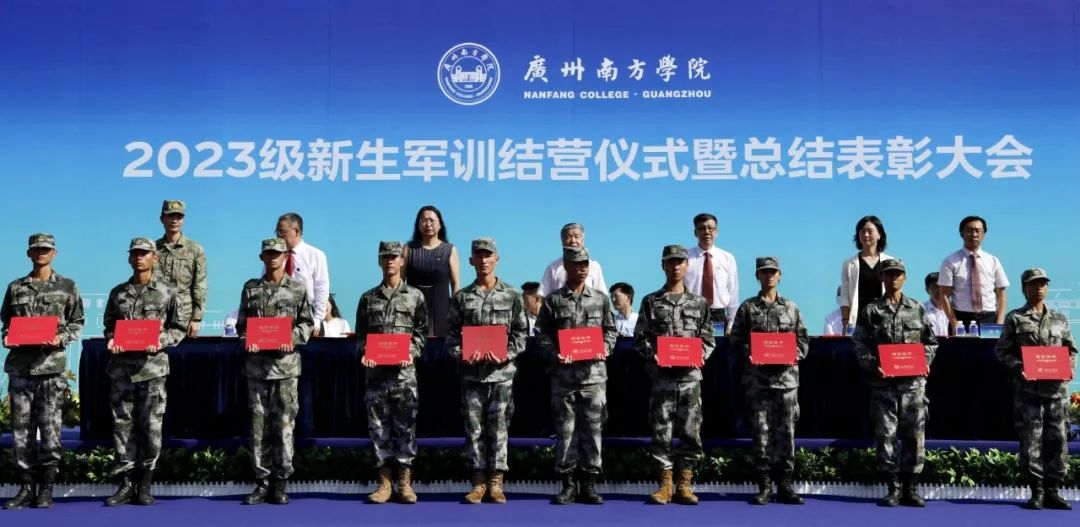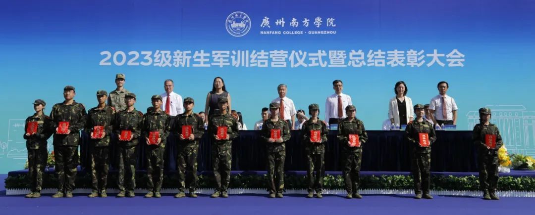 汇报表演后,学校党委副书记、副校长植秀聪宣读军训表彰决定。与会领导为2023级学生军训“先进单位”、“优秀方阵”、“优秀教官”、“优秀教导员”、“军训之星”颁奖。