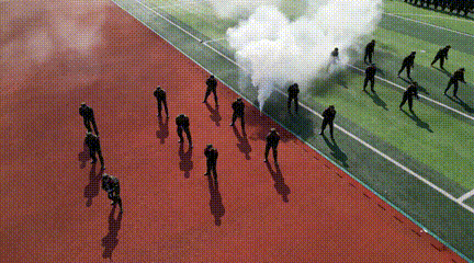 但酷热与烈阳阻挡不了铿锵前进的步伐