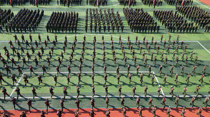 党委书记李建超检阅军训方阵(魏冉 摄)