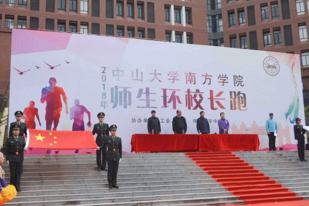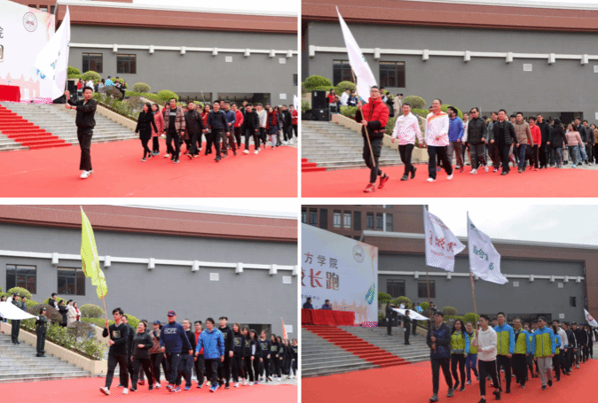 全场奏唱国歌和校歌后,喻世友校长鸣响发令枪,环校跑活动正式开始。各单位方阵依次出发,环绕学校跑步前进。长跑队伍途经东区饭堂、孙中山先生铜像、西区饭堂、图书馆等地,最后回到新综合楼前。在长跑途中,在旗手的带领下,各方队整齐有序地向前奔跑,师生们步伐矫健,时而喊着口号,时而相互鼓励,大家活力满满,热情洋溢,展现了南院人积极向上、团结拼搏的精神面貌。沿途更有工作人员手举指示牌,为参与师生指引方向。