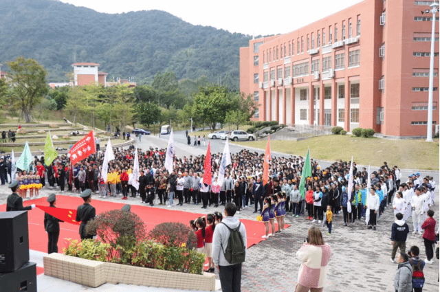 尽管气温较低,但师生们参与的热情高涨。下午两点半,入场仪式正式开始,伴随着音乐和主持人的解说,各单位方队迈着整齐的步伐,喊着响亮的的口号,依次入场。各单位方队入场完毕后,击剑队、棒球队、跆拳道队、啦啦队还带来了精彩的现场表演,赢得了一阵阵热烈的掌声。