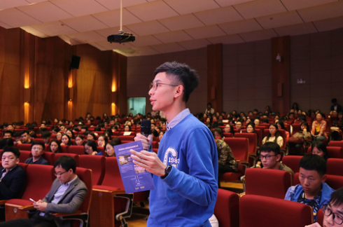 在现场互动环节中,同学们纷纷向师兄提出了一些关于创业的问题,袁可畅师兄都耐心地一一为大家答疑解惑。他在解答时提到,在选拔人才的时候,他们首先注意的是态度而不是学历和能力,他强调态度决定一切。袁可畅师兄认为作为一名跨界创业者,自己在品牌方面是零起点零基础的,但他和团队成员能获得现在的成就,靠的就是自身对创业的态度。他鼓舞大家:“不要怕零起点,只要态度认真,并为其不懈努力,终会成功!”