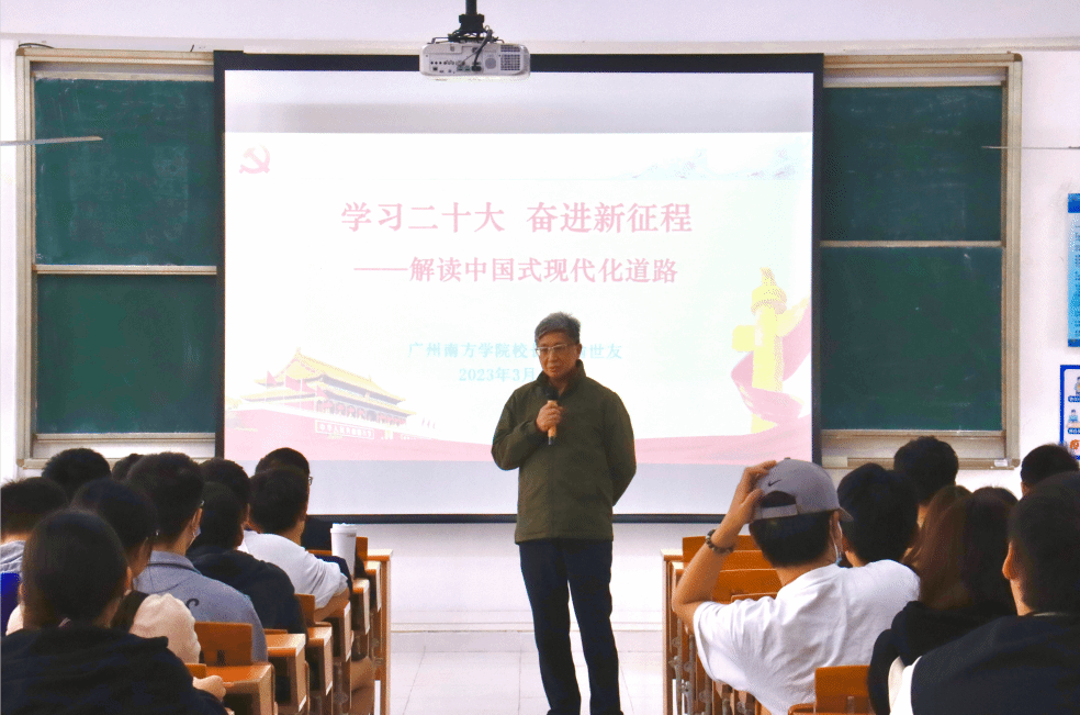 3月14日,williamhill中国官网党委书记李建超、校长喻世友走上讲堂,分别以“踔厉奋发新时代 勇毅前行正青春”、“学习二十大,奋进新征程——解读中国式现代化道路”为题,紧扣党的二十大报告中“中国式现代化”重要内容,向南院学子讲授本学期第一堂思想政治理论课。