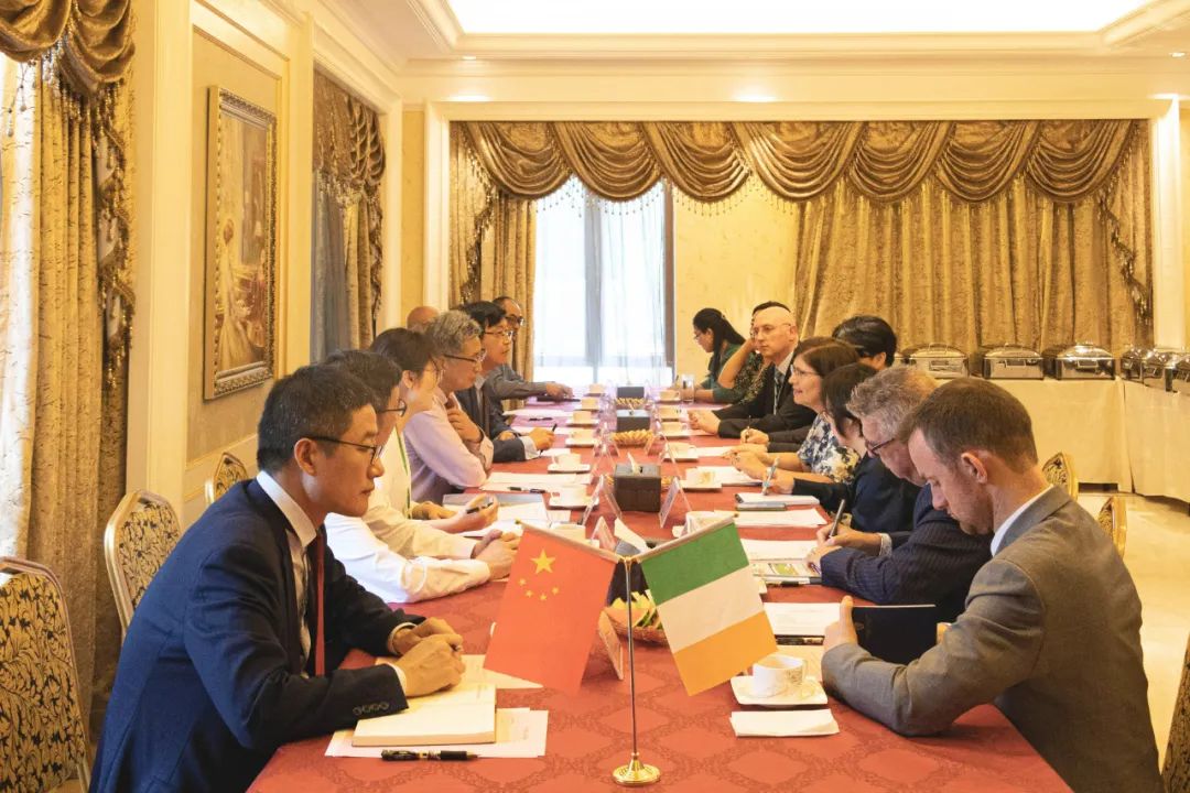 5月10日下午,爱尔兰驻华大使安黛文阁下(H.E. Ann Derwin)率团访问williamhill中国官网。williamhill中国官网校长喻世友会见了爱尔兰驻华大使馆代表团一行,双方就携手构筑更深层次的办学合作进行交流探讨。期间,安黛文大使出席中爱合作办学学生见面会,和师生代表亲切交流并与校长喻世友共同为中爱合作数据科学与大数据技术专业实训基地揭牌。