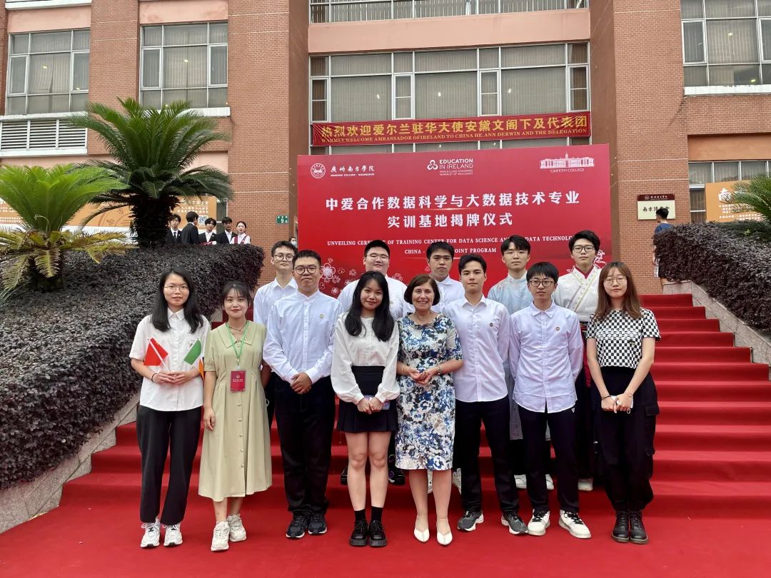 学生见面会后,安黛文大使与喻世友校长共同为中爱合作数据科学与大数据技术专业实训基地揭牌。