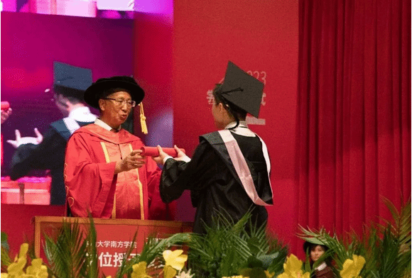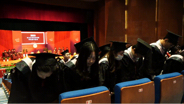 喻世友校长依次为2023届毕业生拨穗正冠、授予学位。简单的动作,承载着殷切希望和美好祝愿。