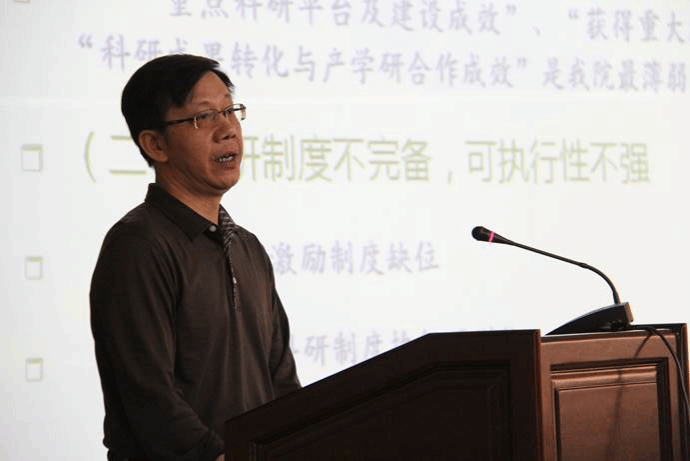 会议伊始,黄静波副院长作全院科研工作报告。报告总结了学院建院以来科研工作取得的成绩,分析了学院科研工作目前存在的问题,并提出了学院科研工作未来的发展思路和举措。