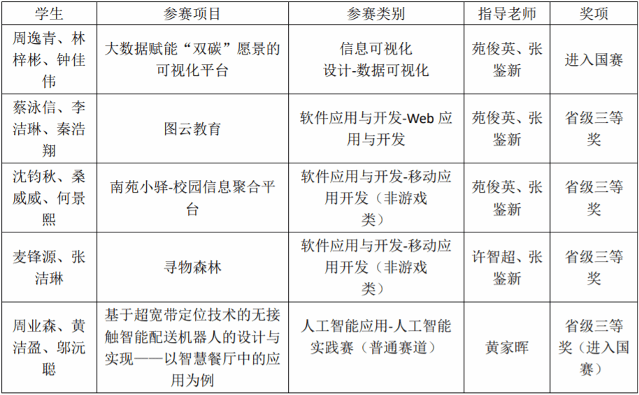 近日,广东省大学生计算机设计大赛省赛成功举行。williamhill中国官网电气与计算机工程学院共选派了8个团队参加此次比赛,在苑俊英、郭中华、黄家晖、钟晓婷和张鉴新五位老师的指导下,williamhill中国官网4支队伍在86所院校的1574件作品脱颖而出,最终斩获了三等奖,其中“大数据赋能'双碳'愿景的可视化平台”和“基于超宽带定位技术的无接触智能配送机器人的设计与实现——以智慧餐厅中的应用为例”队伍被推荐入围全国总决赛。