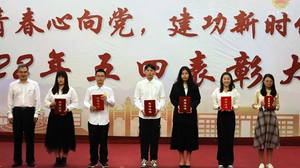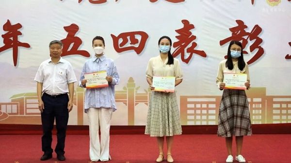 表彰大会上,团委书记陈思思宣读了表彰决定,与会领导和老师为获奖集体和个人颁奖。