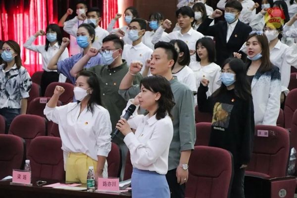 在陈思思老师的带领下,全体与会团员、党员共同重温入团誓词并集体歌唱《光荣啊,中国共青团》。一句句有力的誓言,一束束坚毅的目光,一声声嘹亮的歌声,是活力、是青春,更是体现出了团员们不忘初心,牢记使命,永远跟党走的坚定决心。