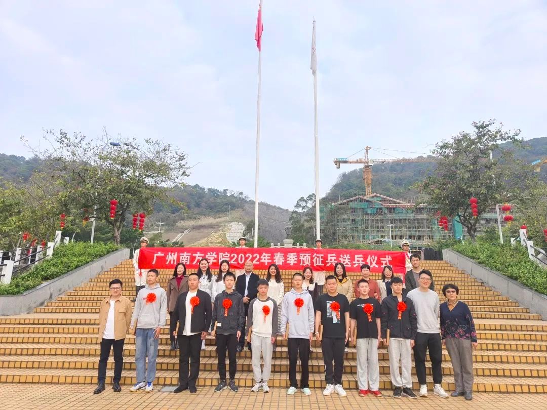 当天早上8时,精神抖擞的入伍学生在升旗台前列队站立。唐燕副书记点名并发表讲话,勉励学生把青春梦融入强军梦,在军营淬炼成钢,报效祖国,为校争光。随后,唐燕副书记为学生佩戴光荣入伍胸花,辅导员老师为学生送上学校纪念品。