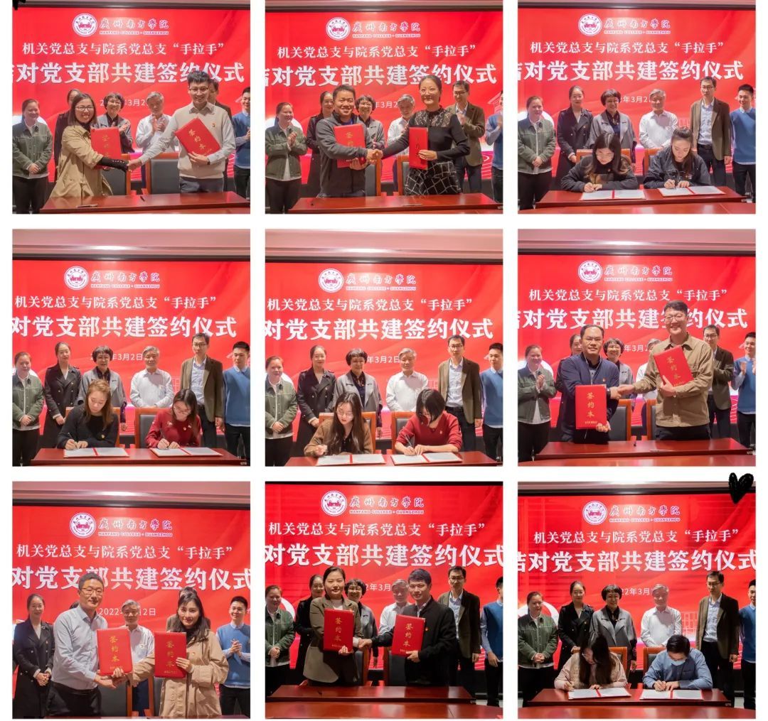 在参加仪式各位领导共同见证下,机关党总支各党支部与院系党总支各党支部分别签订了结对共建协议书。此次签约仪式,标志着机关党总支与院系党总支各党支部结对共建活动的正式开始,为全力打造党建引领学校发展,党建与学校中心工作互融互促,努力开创党建工作新局面奠定坚实基础。