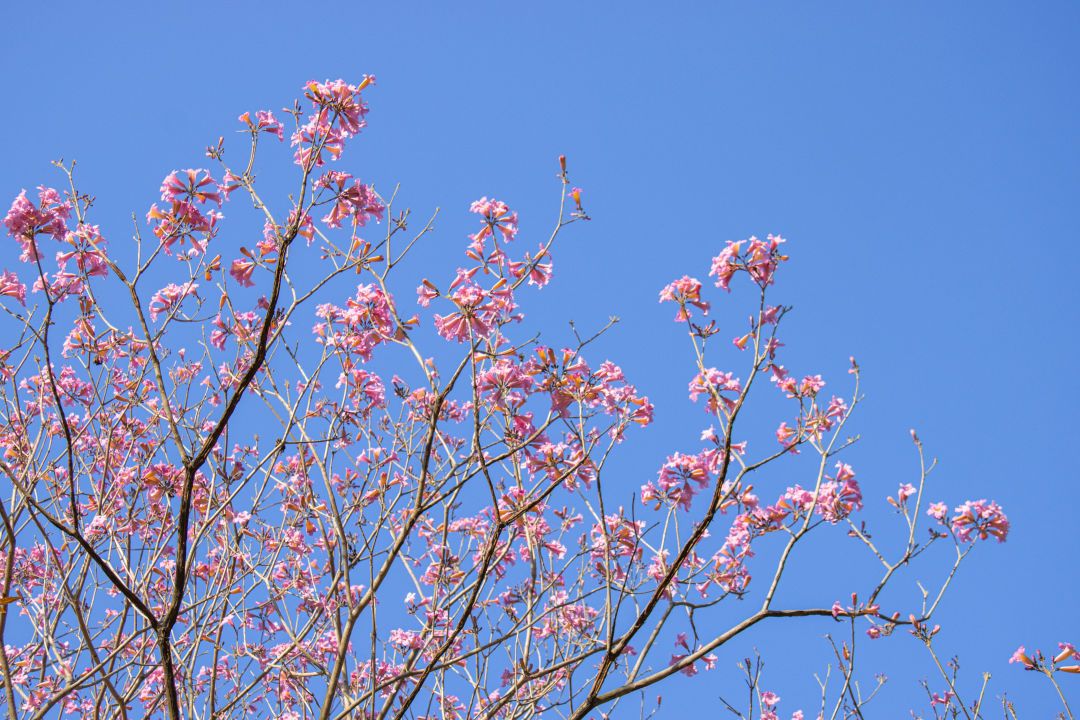 仿佛粉白云霞涌现树梢
