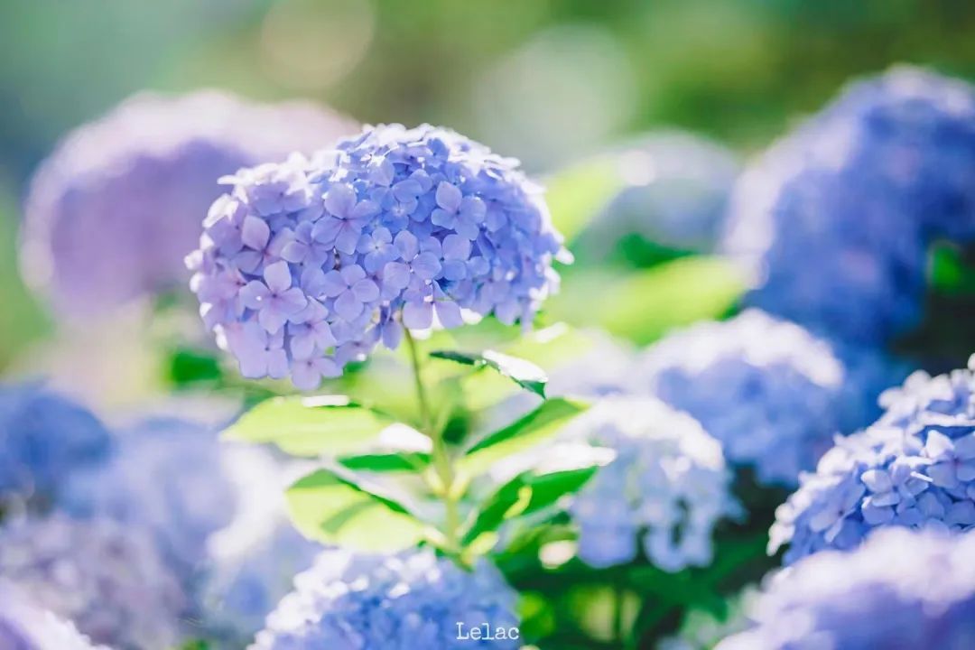 微风拂掠,团团绣球坠繁枝