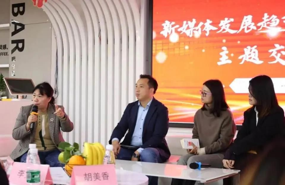 接下来是新媒体发展趋势与职业赛道的主题交流会。人民日报华南报业发展部佛山运营中心主任邵铭先生、网易传媒佛山运营中心陈惠婷女士、知乎副主编陈颖宜女士以及我院胡美香副教授作为嘉宾在台上进行交流。各位老师深入浅出,通过自身工作经验和具体事例阐述前瞻的媒体理念,让大家对新媒体有了更深入的了解,并激励同学们将所学所感的爱国情、强国志、报国行融入到坚持和发展中国特色社会主义事业的奋斗之中。