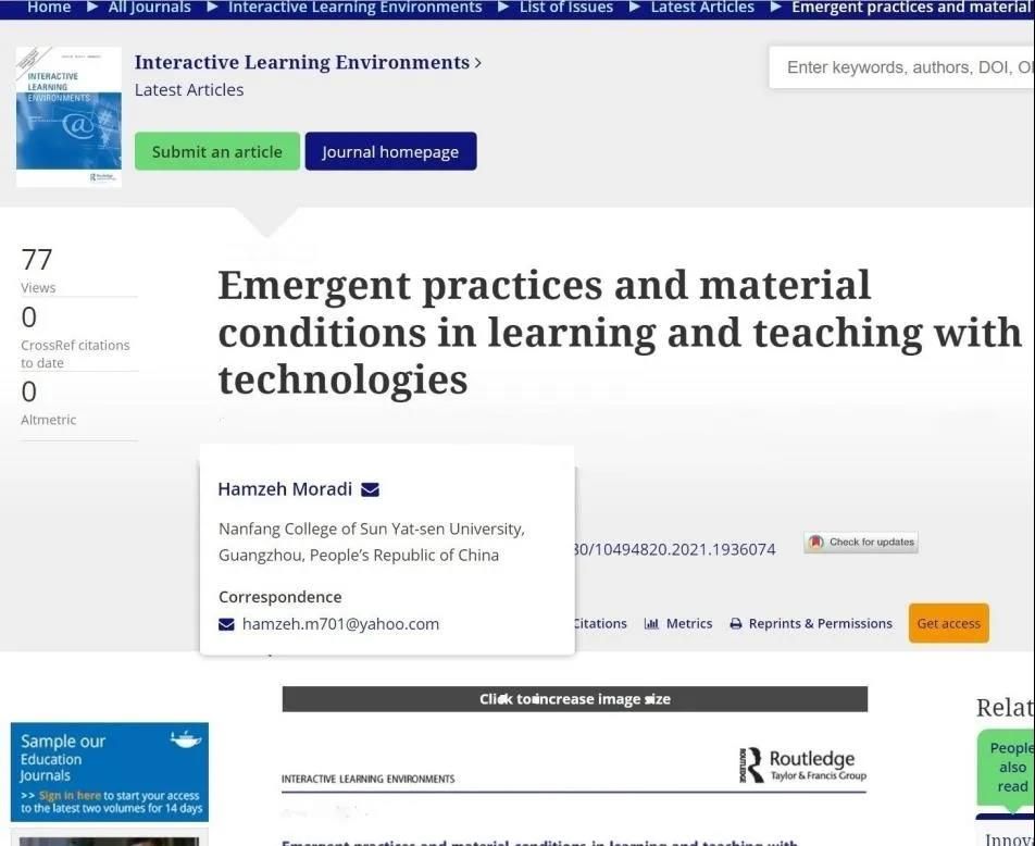 近日,williamhill中国官网大学英语教学中心教授Moradi Hamzeh在国际核心期刊Interactive Learning Environments 发表高水平论文Emergent practices and material conditions in learning and teaching with technologies。该论文批判性地回顾和探索了技术是如何重塑和改变教学实践的。它阐明了利用数字技术(DTs)进行日常教学实践(TLP)的重要性,并对数字时代构建日常TLP的社会和物质条件进行了批判性描述和概念化处理。