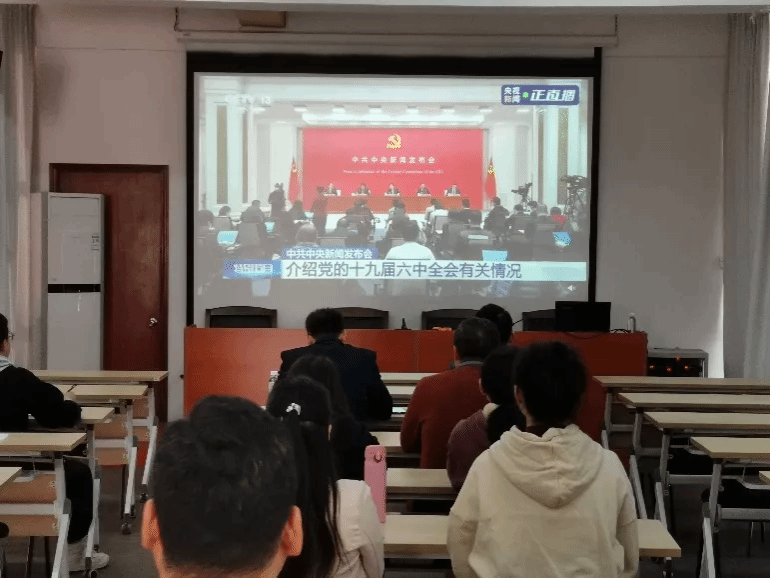 11月12日上午,中共中央就党的十九届六中全会精神举行新闻发布会。williamhill中国官网在行政楼三楼会议室设主会场,党委理论学习中心组成员在三楼会议室集体观看大会直播。各二级党组织、各单位通过电视、手机、网络等媒体因地制宜组织广大党员干部、师生各自设立分会场收听收看新闻发布会直播。