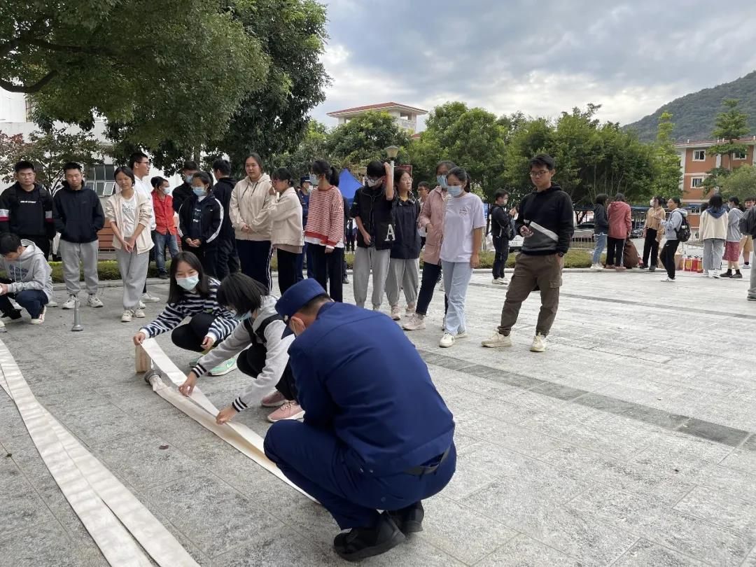 启动仪式结束后,刺耳的火灾警报声响起,参会的师生员工代表进行了消防应急疏散演练。从化区消防大队消防官兵对在场师生开展了消防实操培训,重点讲解了消防器材的使用方法、性能及日常维护保养,手把手指导灭火器的操作方法,以及消火栓水带连接方法。