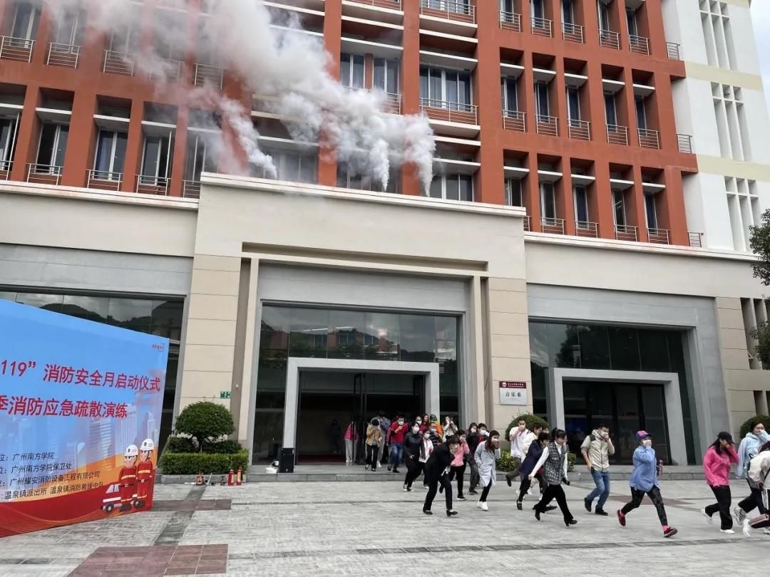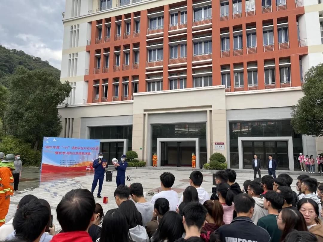 11月12日,williamhill中国官网联合从化区消防救援大队温泉镇消防救援站、温泉派出所,组织开展了2021年度“119”消防安全宣传月启动仪式暨秋季消防应急疏散演练活动。校长助理代燕飞、保卫处处长乔华锋、副处长雷新华、各二级单位消防安全联络员、教师代表、学生代表、驻校合作单位相关负责人和员工代表参加了演练活动。此次演练旨在践行党史学习教育“为群众办实事”的要求,扎实做好学校消防安全宣传教育工作,提升师生员工消防安全意识和应对突发情况的能力。