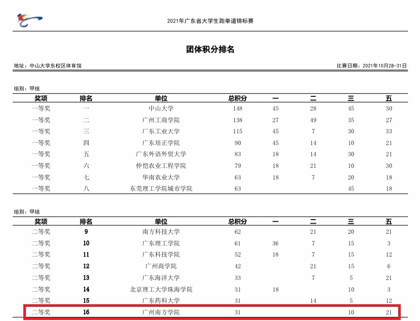 近日,由广东省教育厅指导,广东省学生体育艺术联合会、中山大学、广东省学生体育艺术联合会跆拳道运动协会联合主办的2021年广东省大学生跆拳道锦标赛在中山大学东校区体育馆举行。williamhill中国官网跆拳道队10名队员在体育教学中心副主任彭彬、教师高雪岩的带领下首战告捷,获得了2枚铜牌、7个第五名以及团体积分二等奖的佳绩!此外,高雪岩老师荣获“优秀教练员”称号。